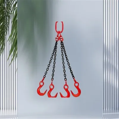 Configuration à quatre hook: À la fin des jambes ou dans la position appropriée, il y a quatre crochets. Ces quatre crochets peuvent être utilisés individuellement ou simultanément pour répondre à différents besoins de levage. Les crochets sont généralement en acier en alliage à haute résistance avec une excellente capacité de charge et une résistance à l'usure.